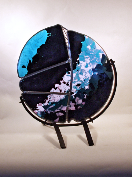 This is where I am going to place everything else that doesn't fit nicely into the structure that I have created... which will probably be a lot.![]() Fire, the main reason people get into ceramics and perhaps metal working too. ![]() How many things are wrong with this picture? ![]() Fused and Stained Glass techniques used to reclaim this broken piece of glass. Approx. 2 ft. diameter. ![]() Detail of technique and the stand. |