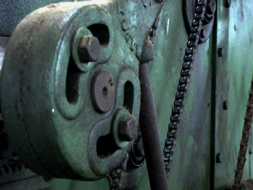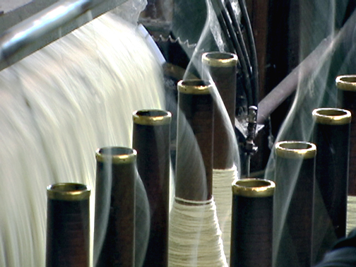 The Craft Center managers took a trip to the Yolo County Wool refinery located between Davis and Woodland. The facility is unique because it will process small quantities of wool. It is the only available option for the independent crafter wanting to get raw wool processed into a usable form.  Raw wool splattered on the top of a carding machine.
